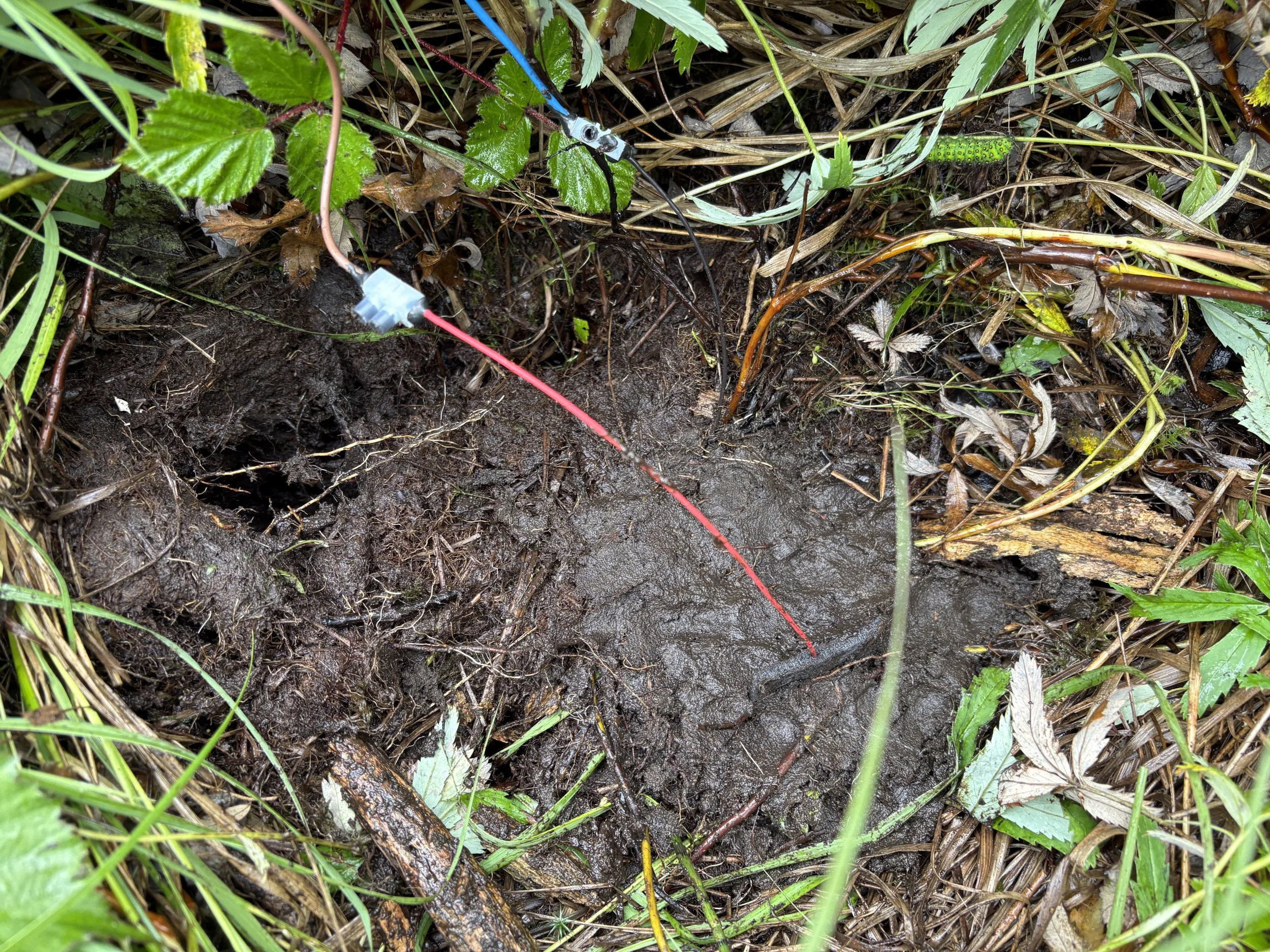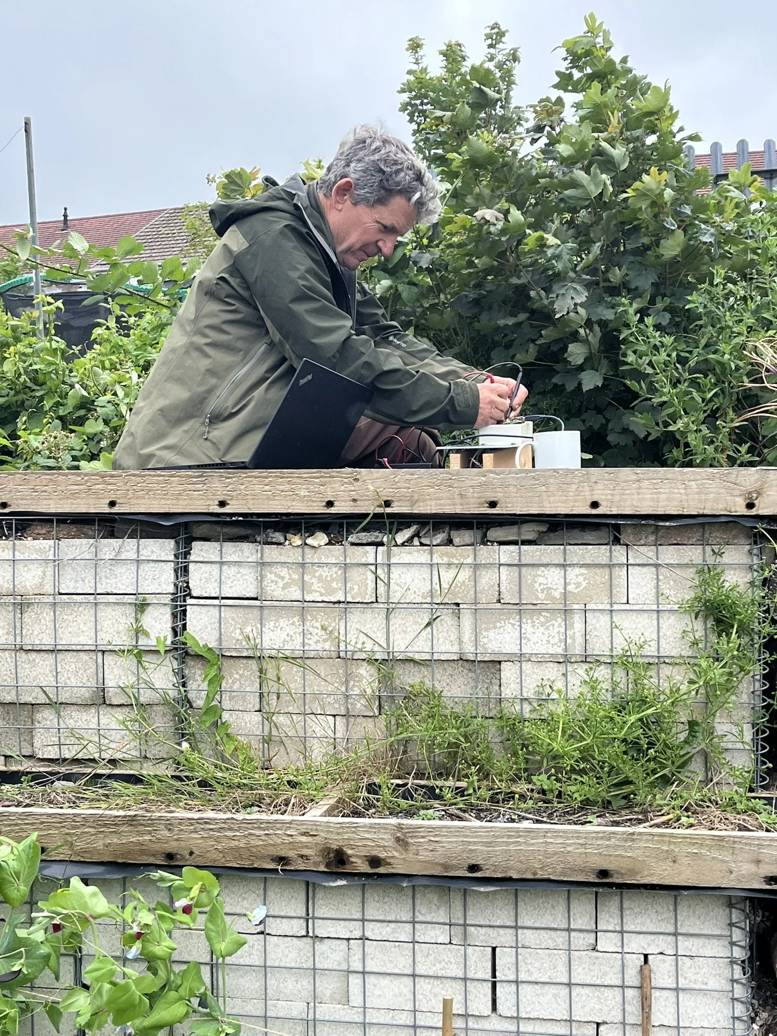 Below we present a live data-driven artwork that visualises real-time microbial soil voltage readings. Custom-built sensors compare the biological activity in the Crymlyn Bog Wetland—Wales’s largest carbon sink—with readings from contaminated and undeveloped soil at the Mount Zion Chapel garden in Bonymaen.