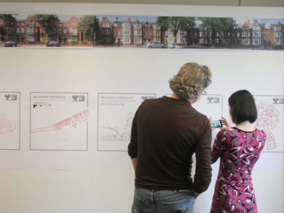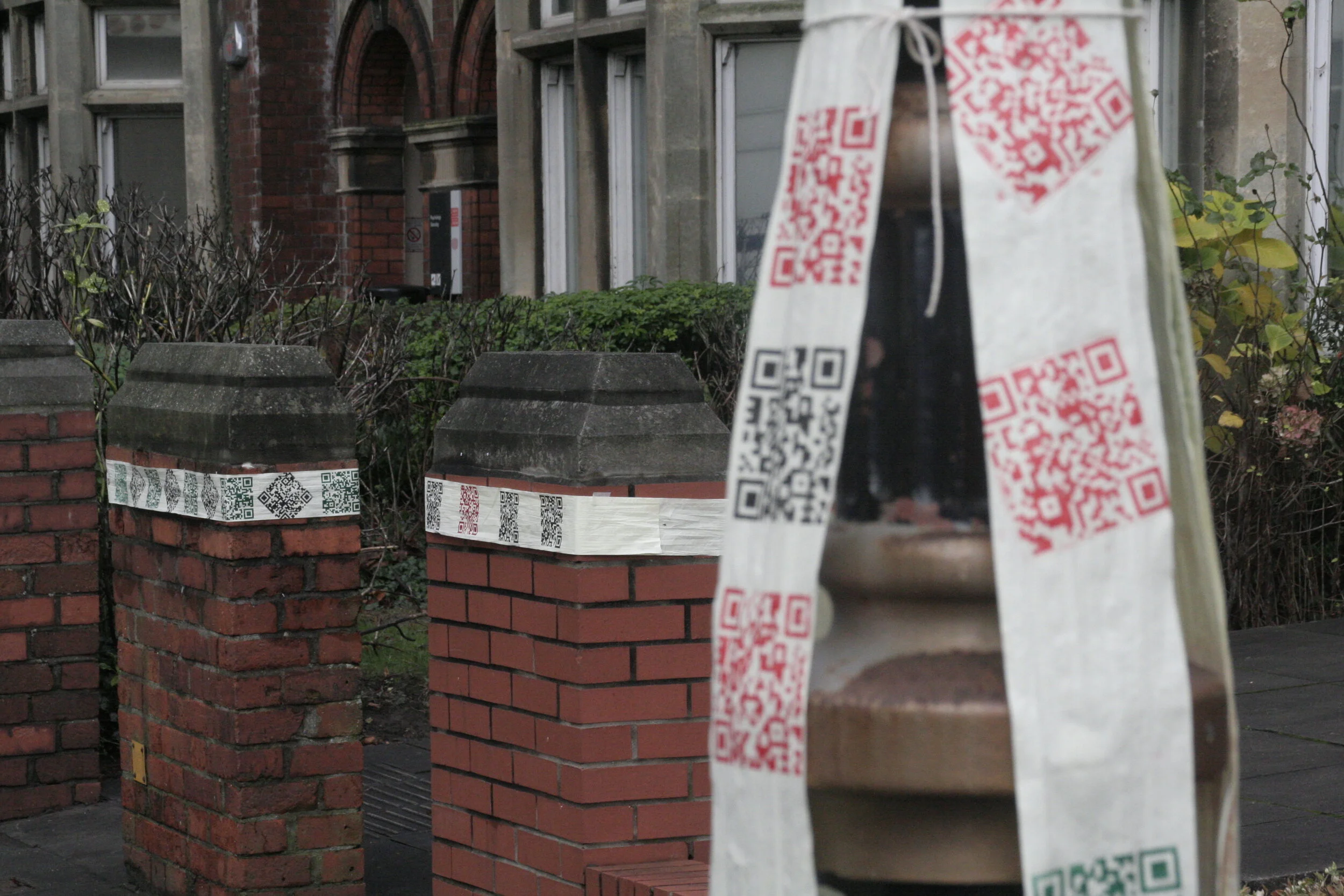 The ribbons and QR stones belong to the researchers, who may, in the future, decide to cut the ribbon up, post parts to others, or simple hang or frame the work for a special place. The QR ribbon is an analogue gateway to a digital identity, they are conceived to adorn doors or thresholds, giving enticing glimpses of what kind of activity is undertaken behind the closed door of often bland research environments.