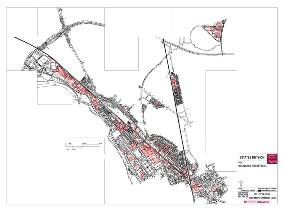 A series of framed prints: reconfigured the footprint map of Cardiff university buildings across the city.